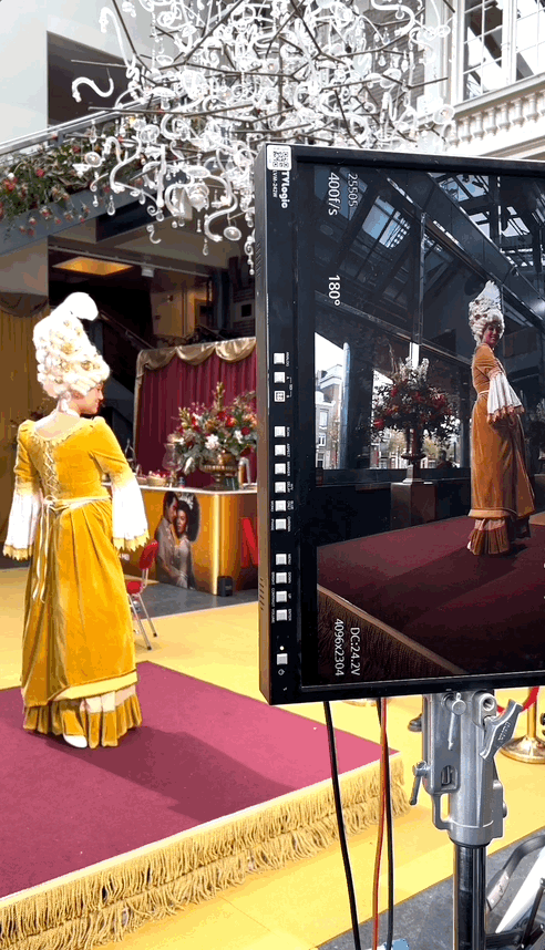 “The Royal Soirée” took place at the Concertgebouw in Amsterdam a concert hall in order to integrate the musical part, the big hall was reserved for an Orchestra but there were musicians at every corner. To make our guests feel as part of the show we casted actors to talk to them in Bridgerton style, we had a royal acrobat from a scene in the show and even a calligraphist that would write their names in cursive all of whom where in full costume. When everyone arrived to the venue they couldn’t help but feel like royal.